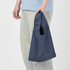 くるりと丸めてゴムバンドでとめると、手のひらに収まるほどのコンパクトサイズで持ち運べるエコバッグです。