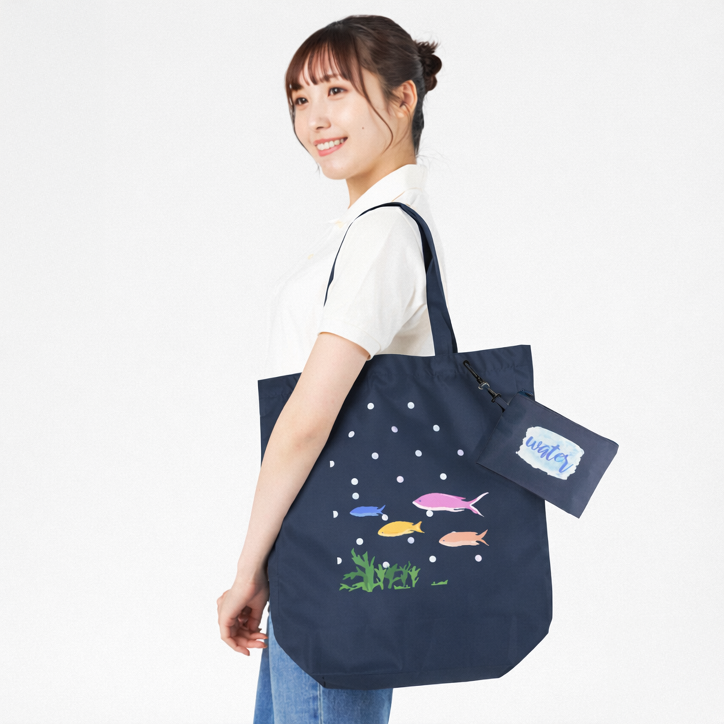 携帯にも収納にも便利なトートバッグです。バッグを使わないときは、コンパクトにたたんで付属のポーチに入れておけば旅行先などで増えた荷物も入り大助かりします。大きめのサイズで肩掛けできる持ち手の長さなので、サブバッグとして優秀です。