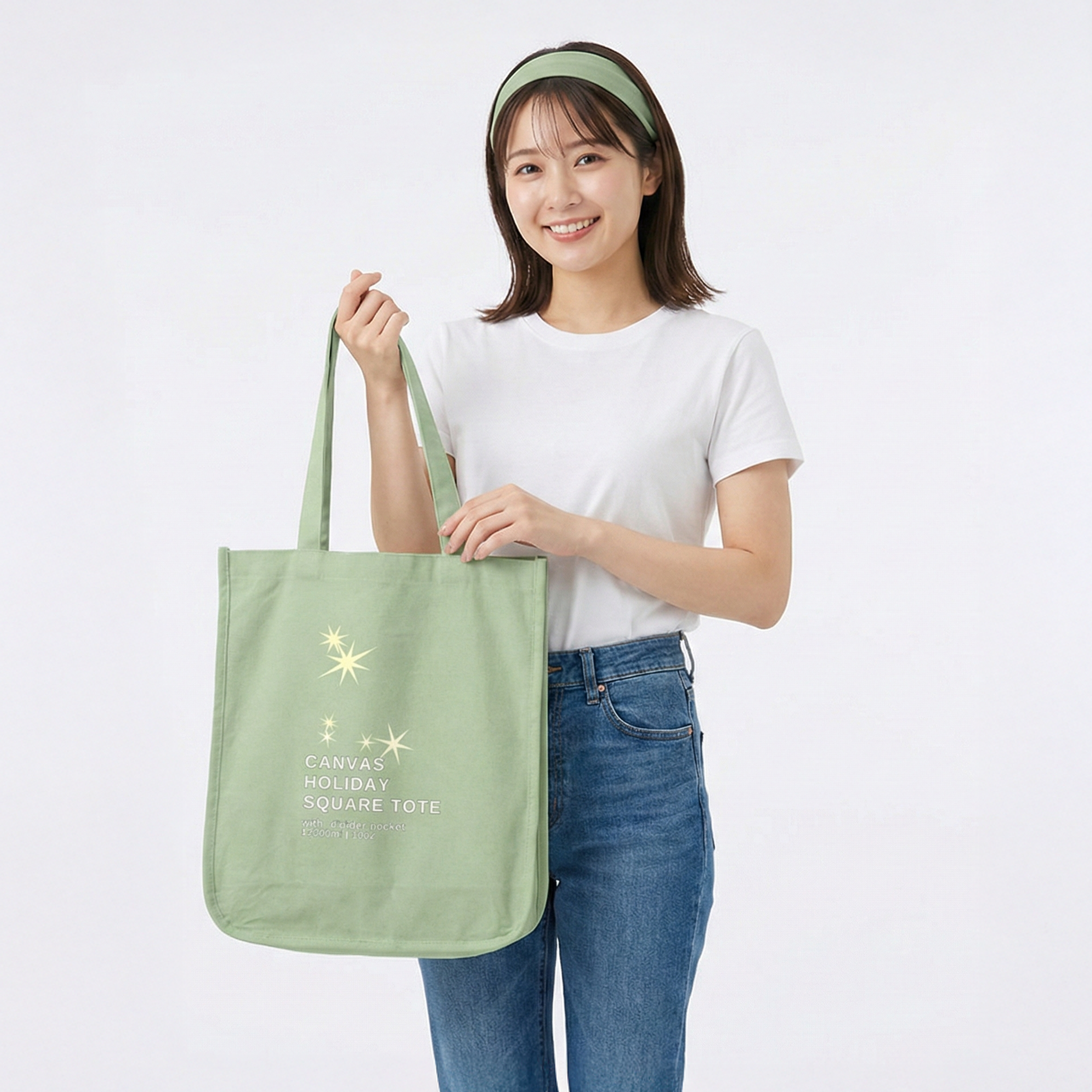キャンバスホリデースクエアトート仕切りポケット付ver.2のレビューと制作事例