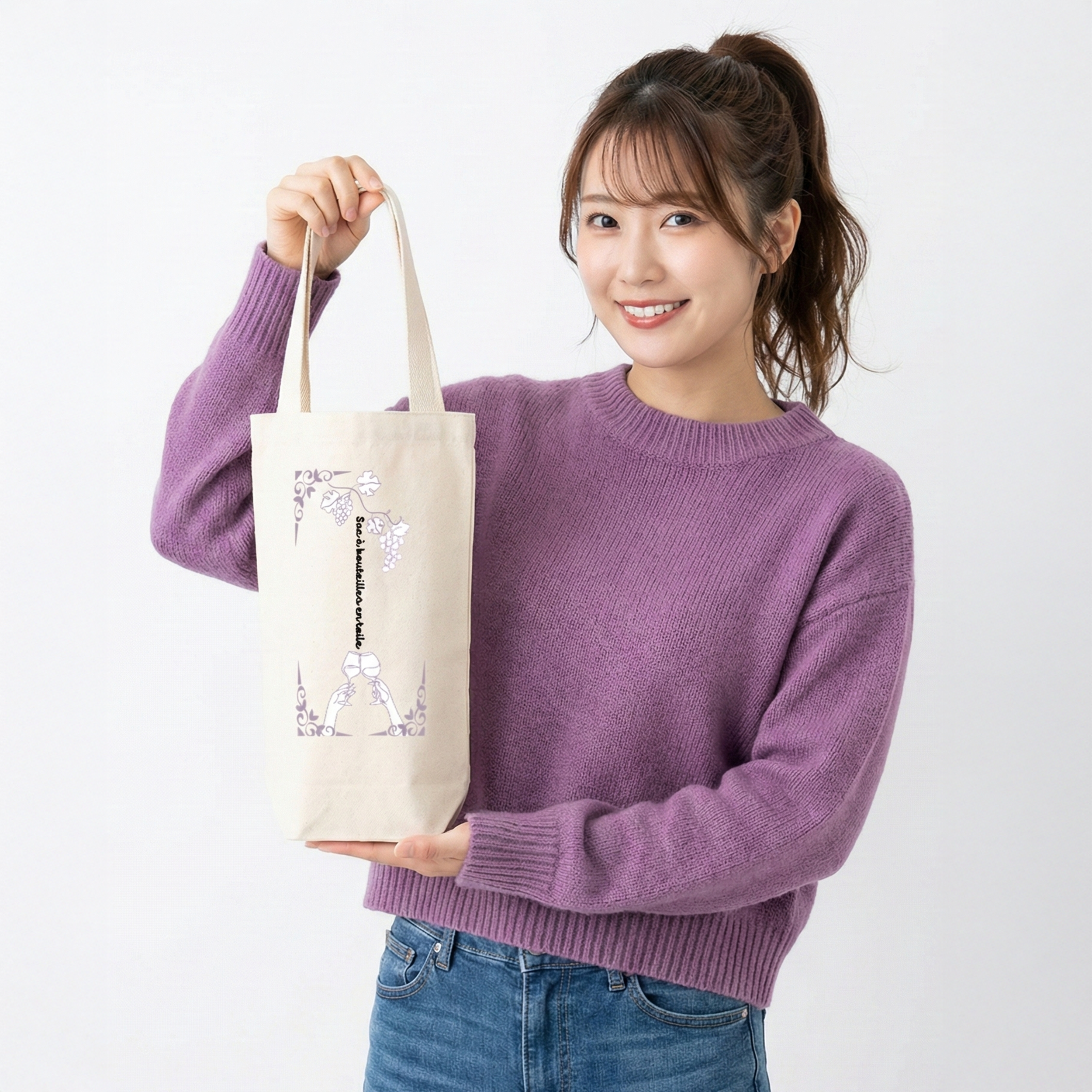 厚手のキャンバス素材なのでしっかりした生地感となっており丈夫なので、重さのあるお酒を持ち運ぶのに便利なトートバッグです。