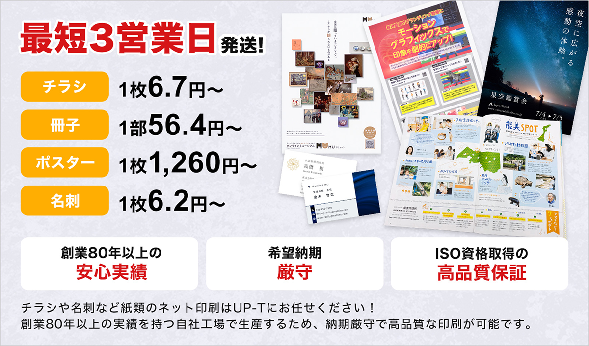 紙のネット印刷はUP-Tにご依頼ください!